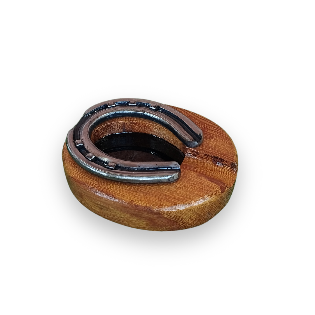 _ Ferradura polida e revestida com resina epóxi pra proteger contra oxidação.