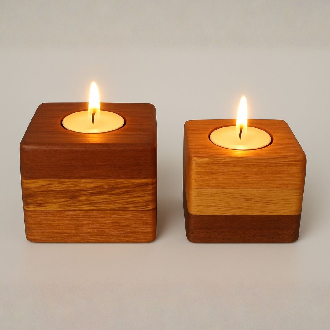 Kit de porta vela artesanal marchetado com combinação de madeira de lei para vela Rechaud.